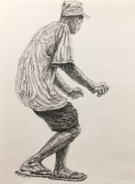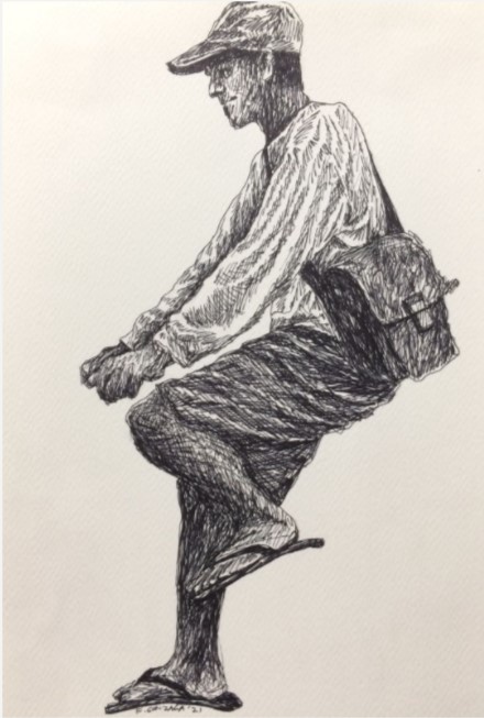 Since deciding on taking an artistic career change in 2008, he has participated in over 70 group shows to date, in Manila, Iloilo, Negros, Cebu, Davao, Baguio, Prague, Italy, and Kuala Lumpur. In 2014, he was invited to join a month-long art residency program in Kuala Lumpur under House of Matahati. In terms of subject matter, this resident of Bacolod focuses on those living on the fringes of society and elaborates on values he believes are important.