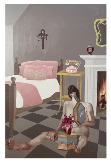 Summer De Guia (b. 1997) graduated from the University of Santo Tomas with a degree in Fine Arts major in Advertising. Later on, she found herself in love with painting female figures, particularly distorted ones. Her works interrogate the politics of women's bodies and the constructs related to femininity, identity, and self-actualization. She has exhibited in numerous local galleries.