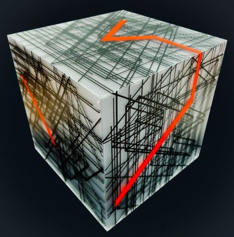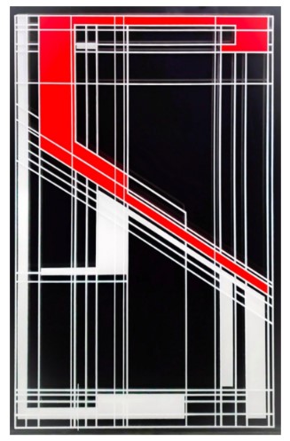 Using plexiglass for the first time and working with its transparency, the artist applies his signature lines, which intersect, crisscross, and create a highly-layered surface, approximating the neural pathways that transmit messages from different parts of the brain. Some lineations are more pronounced than others, suggesting the memories that continue to linger, overlapping with and blotting out others.