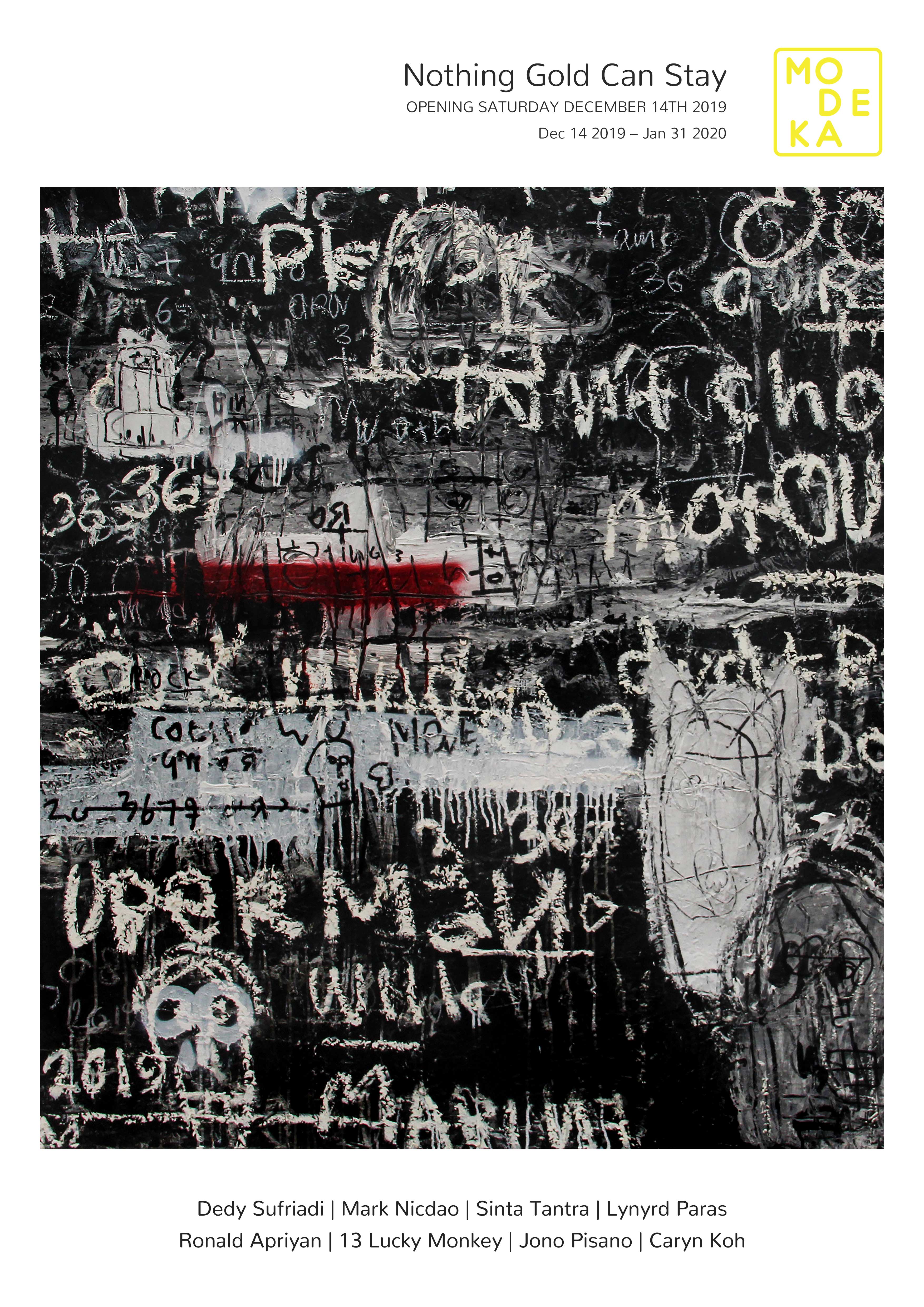 Lifted from Robert Frost’s 1923 poem, “Nothing Gold Can Stay”, the exhibition gathers the works of different artists whose practices explore a spectrum of forms, themes, and, materiality. Here, an inquiry is made to consider the idea of impermanence as we struggle from what is deemed as the impalpable human desire for mortality and the difficult truth characterized by the nature of things —that in our world, nothing will remain forever. Navigating on a wide range of tropes that suggest an interrogation into the human ego as the root of this inclination, the exhibition examines the depth of our individual differences in the diminution of our impulses. Views that give prominence to one’s ability to de-emphasize the ego, such as in Buddhist practices and philosophies, which counterpoise the negative consequences that arrange a pursuit of fame tied with celebrity status and with the obsession of finding ways to outlive the body.