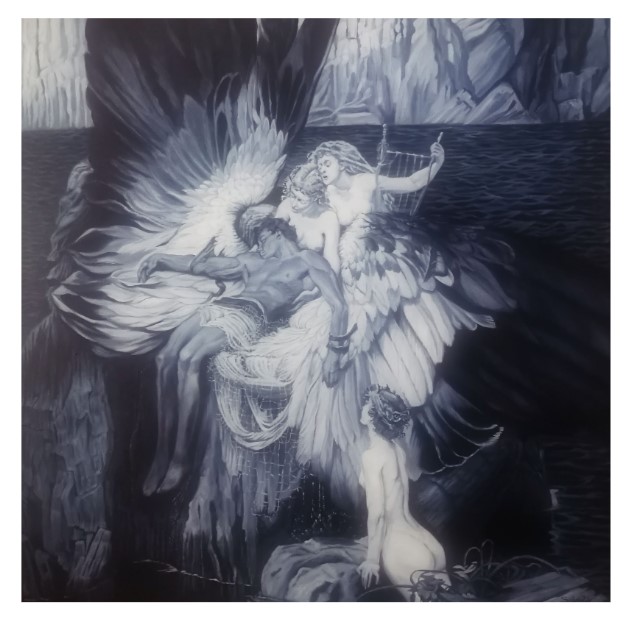 The journey from monochrome to colour is a spiritual one. While monochromatic composition plays with the devoid of light, Randy likens painting in colour to chasing the light (as it takes light to show the state and being of any subject). While in bereavement, there is no light and only darkness. To step out of the dark, Randy made a courageous and fearless shift to painting in color. What makes the journey more significant is that, by painting iconic mythical, spiritual, and religious images, Randy seeks to reclaim his faith in God and hope in life.
