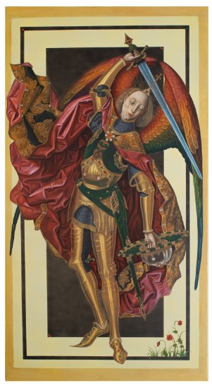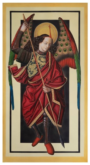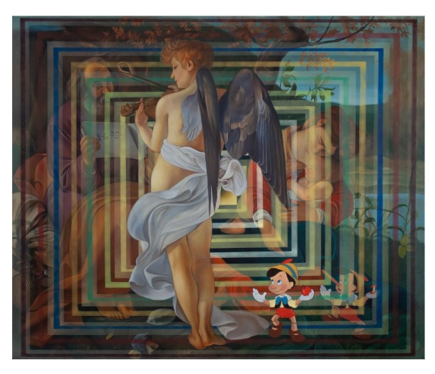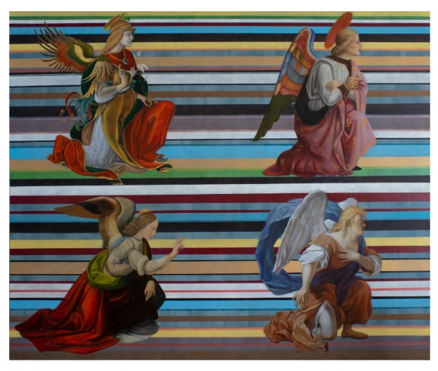 “I appropriated the angels from the works of the Old Masters between the Renaissance and the Rococo era. Where the most produced of different versions of biblical representations. I present my work with concentric elements and experiment with glass.”
